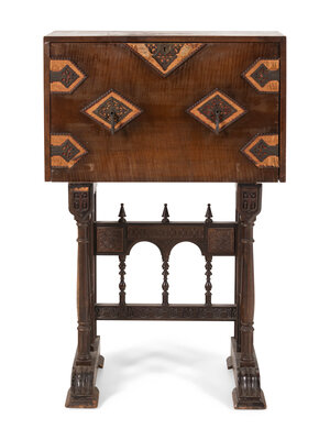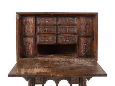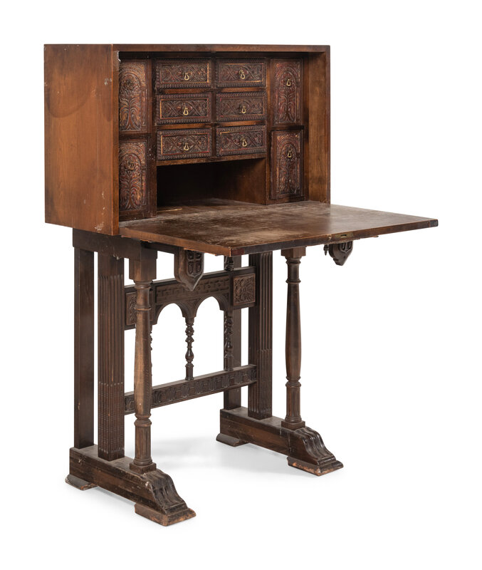 A Spanish Baroque Style Walnut Vargueño and Stand