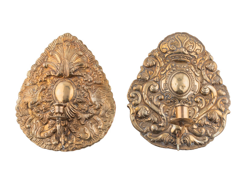 Two Repouséed Metal Single-Light Sconces