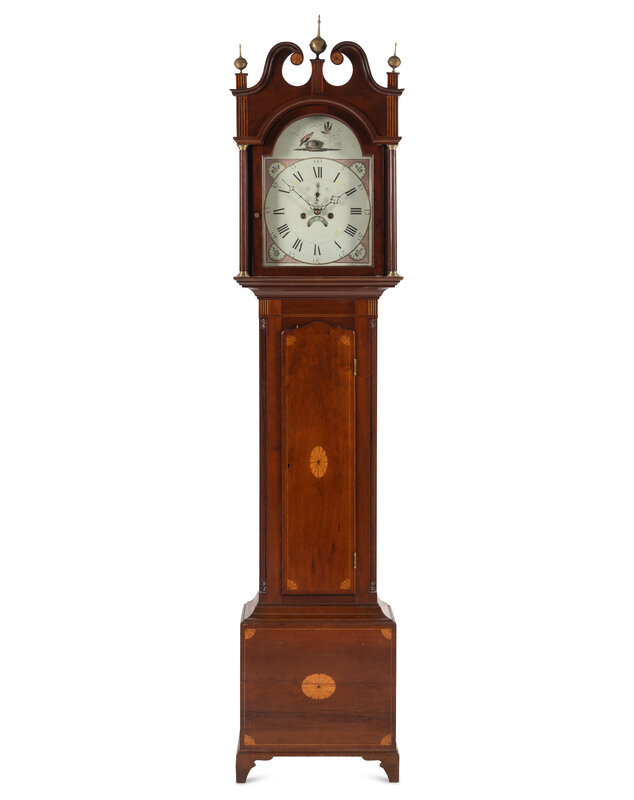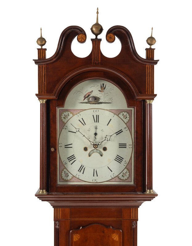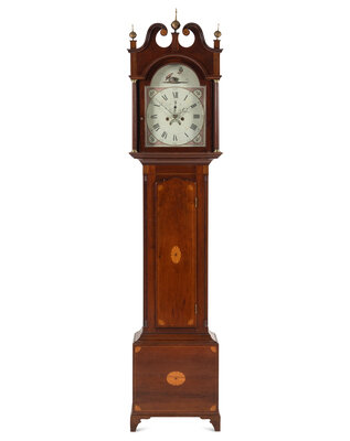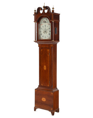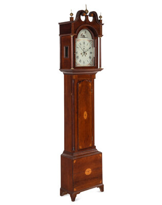 An English Mahogany and Marquetry Tall Case Clock