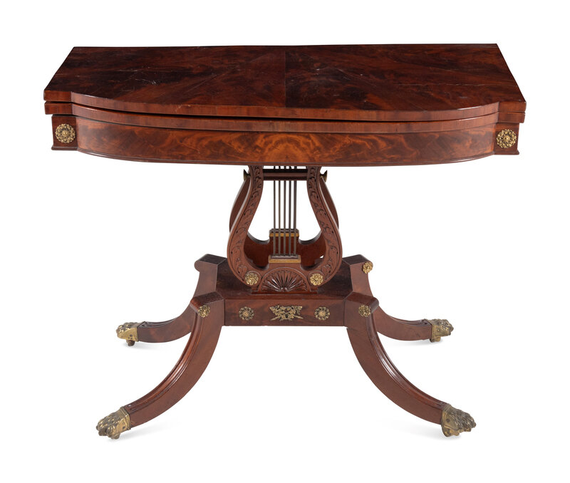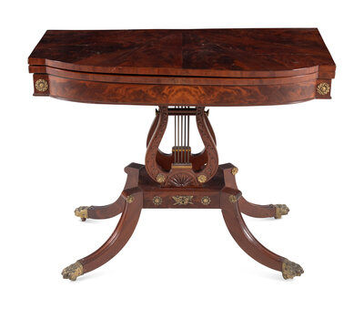 A Classical Gilt Metal Mounted Mahogany Flip-Top Table