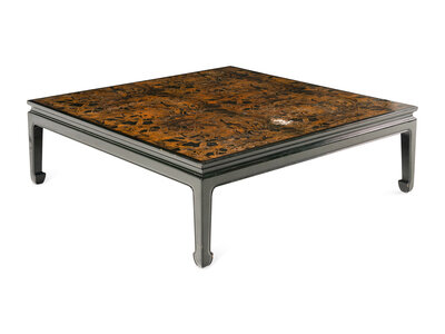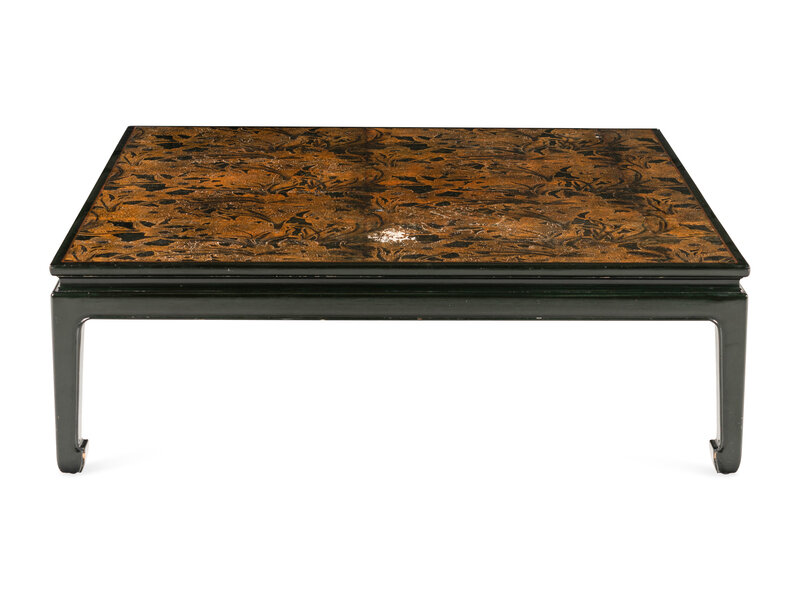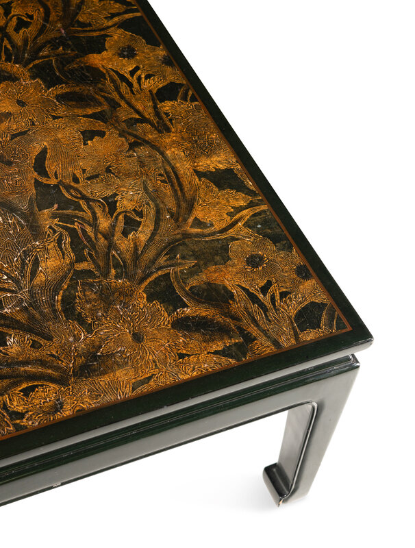 A Contemporary Black Lacquered and Parcel-Gilt Low Table