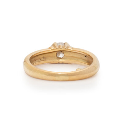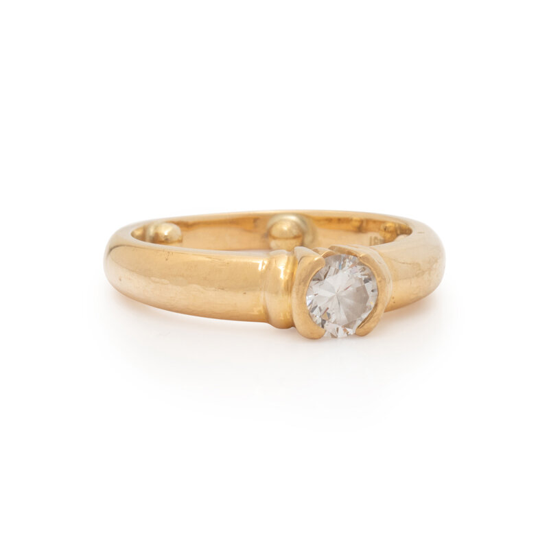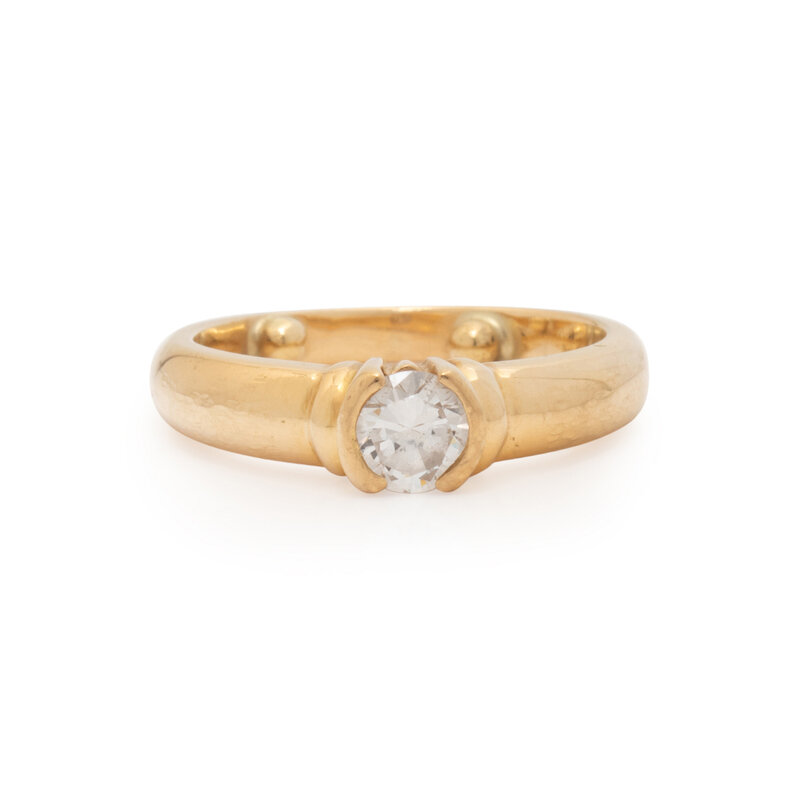 Round diamond weighing approximately 0.50 carat. 18 karat yellow gold. Ring size 6 3/4.