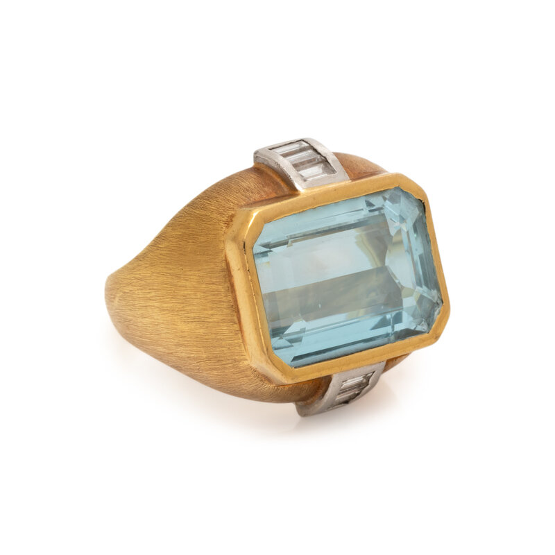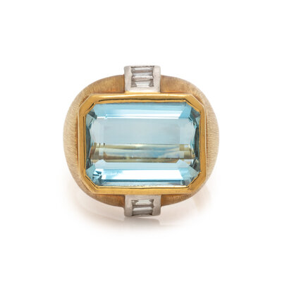 BORIS LEBEAU, AQUAMARINE AND DIAMOND RING