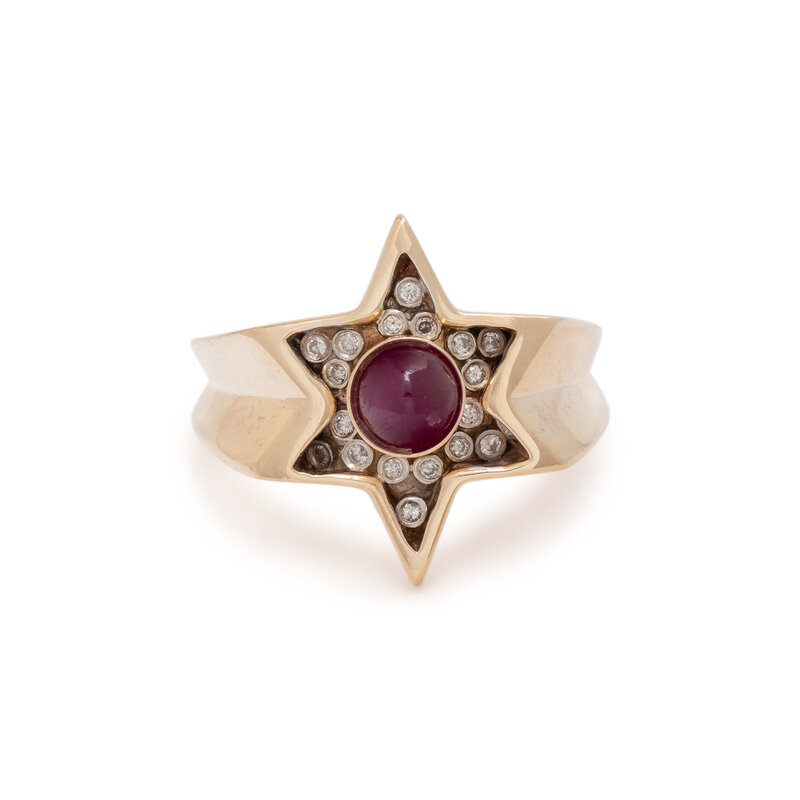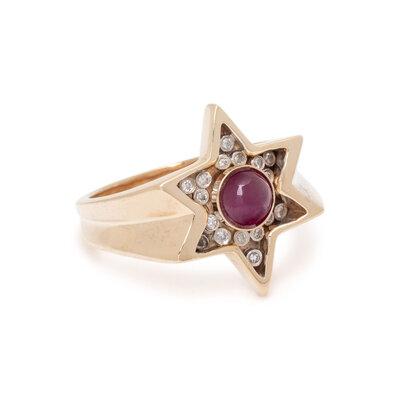 RUBY, DIAMOND, AND YELLOW GOLD STAR RING