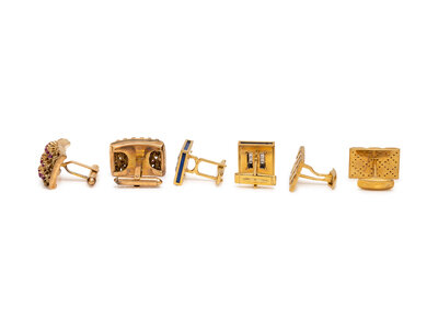 COLLECTION OF GOLD AND GEMSTONE CUFFLINKS
