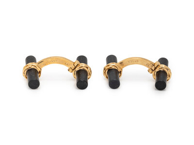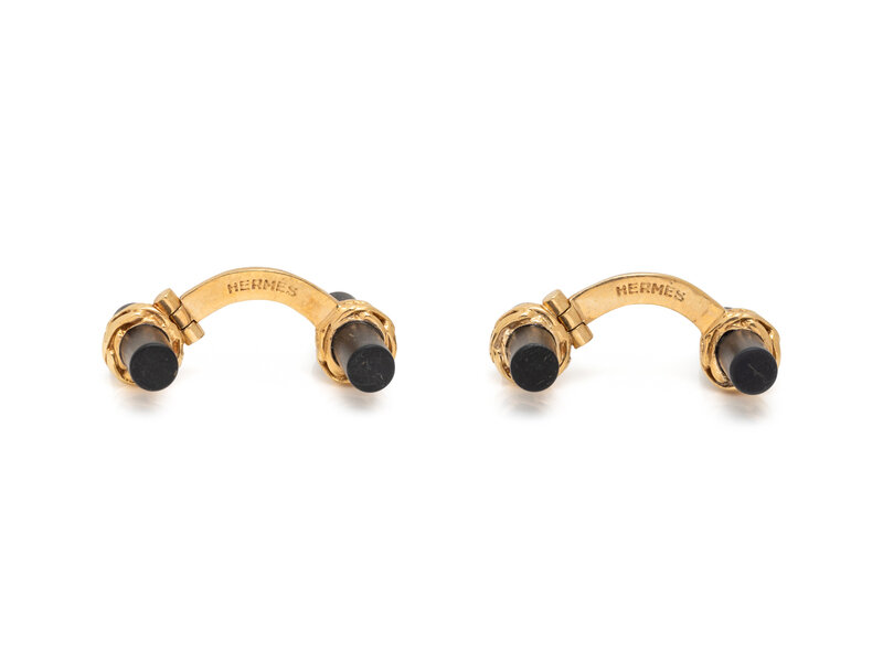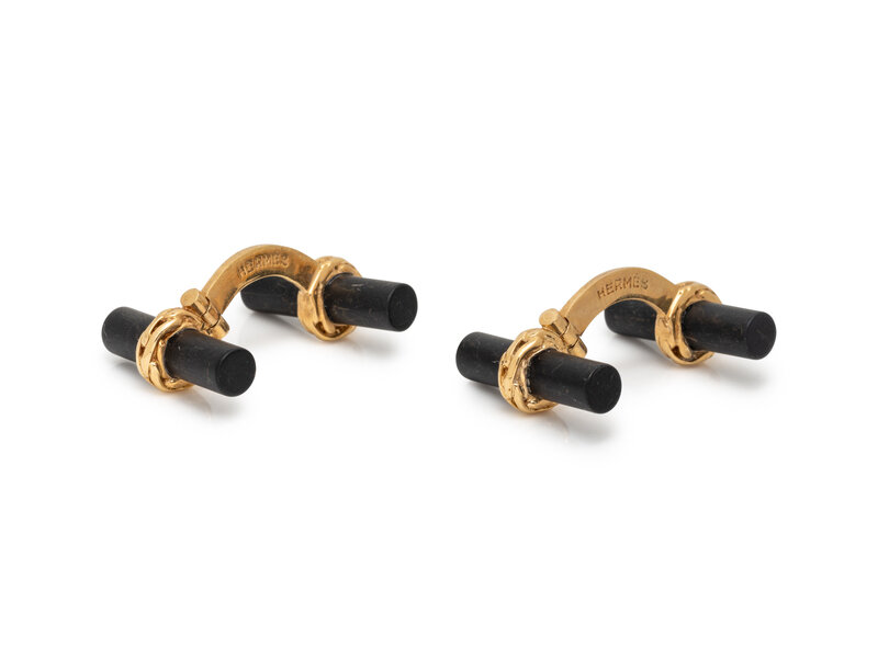 HERMÈS, YELLOW GOLD AND ONYX CUFFLINKS
