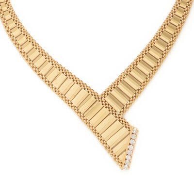 YELLOW GOLD AND DIAMOND ASYMMETRICAL NECKLACE
