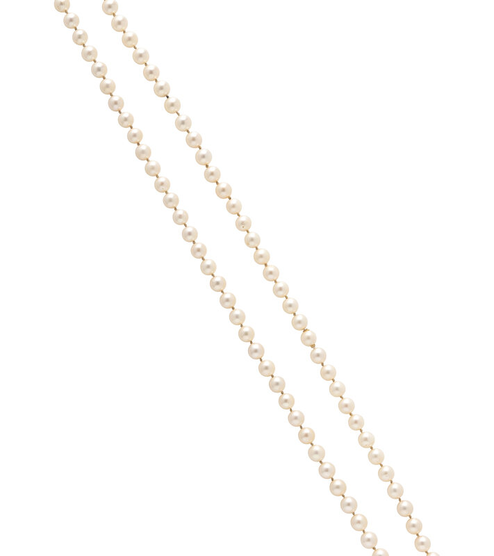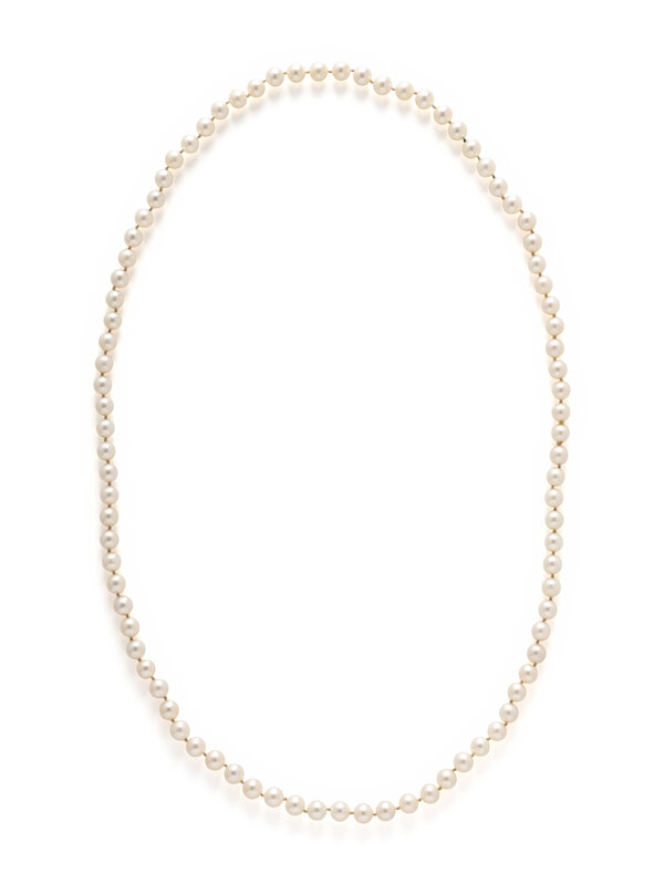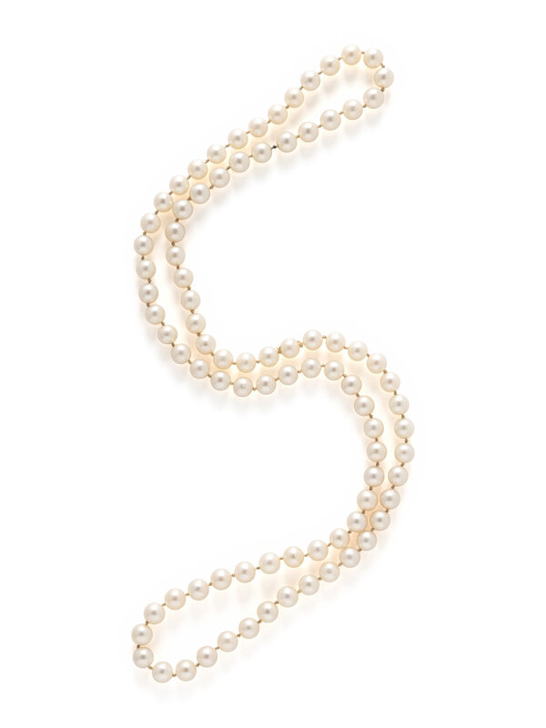Single strand of cultured pearls measuring approximately 7.50 mm. 30 inches long.