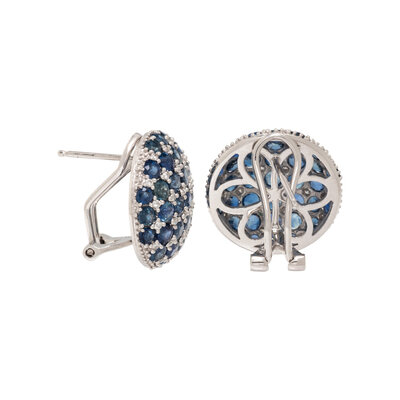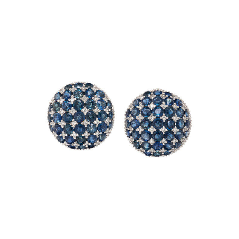SAPPHIRE AND DIAMOND BUTTON EARRINGS