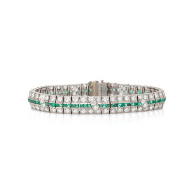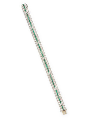 ART DECO, DIAMOND AND EMERALD BRACELET