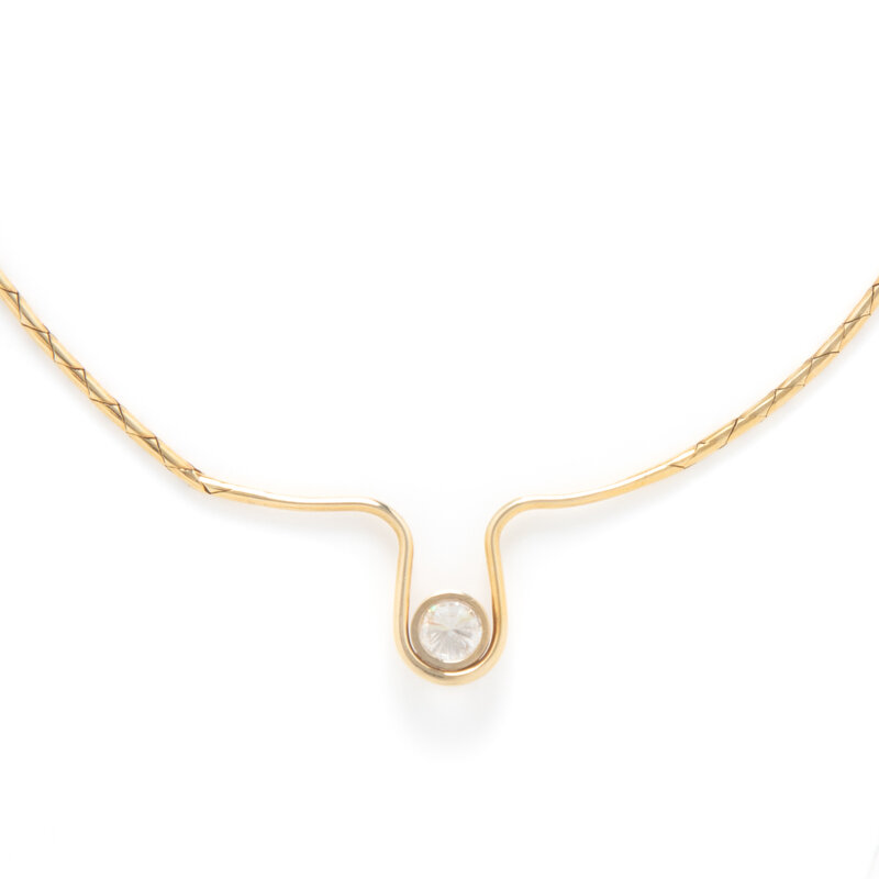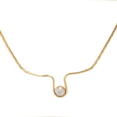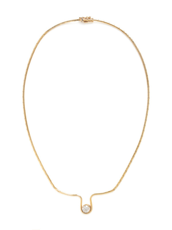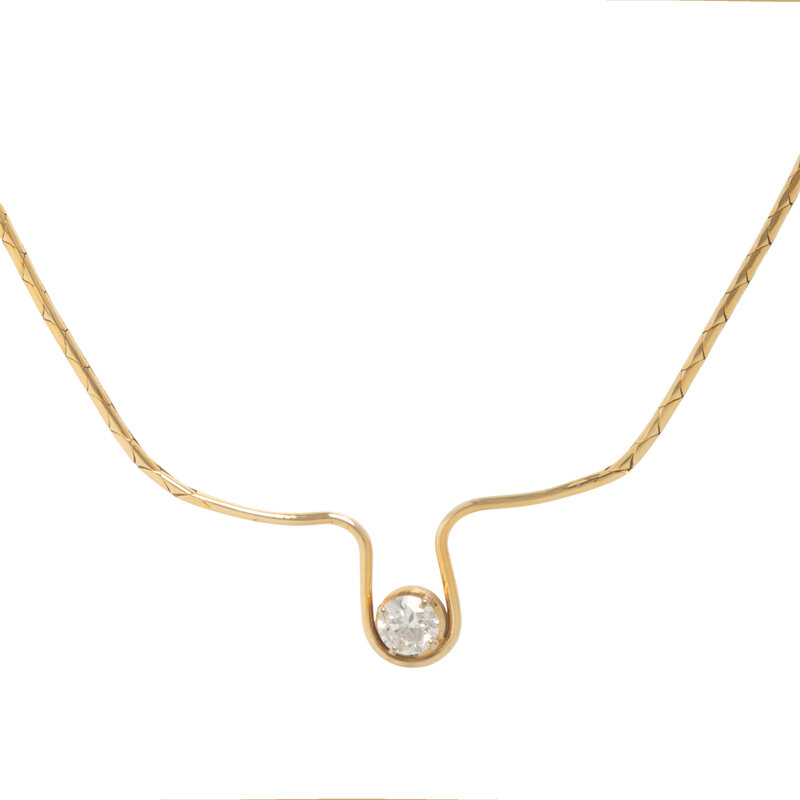 Round diamond weighing approximately 1.15 carats. 14 karat yellow gold. 17 inches long.