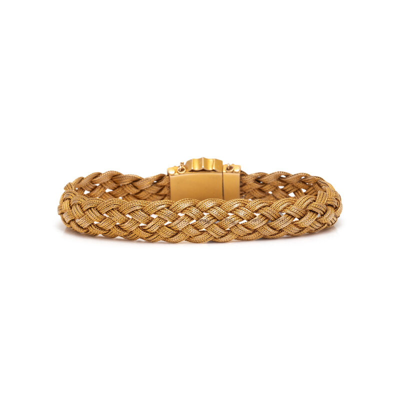 ANTIQUE, YELLOW GOLD MESH BUCKLE BRACELET