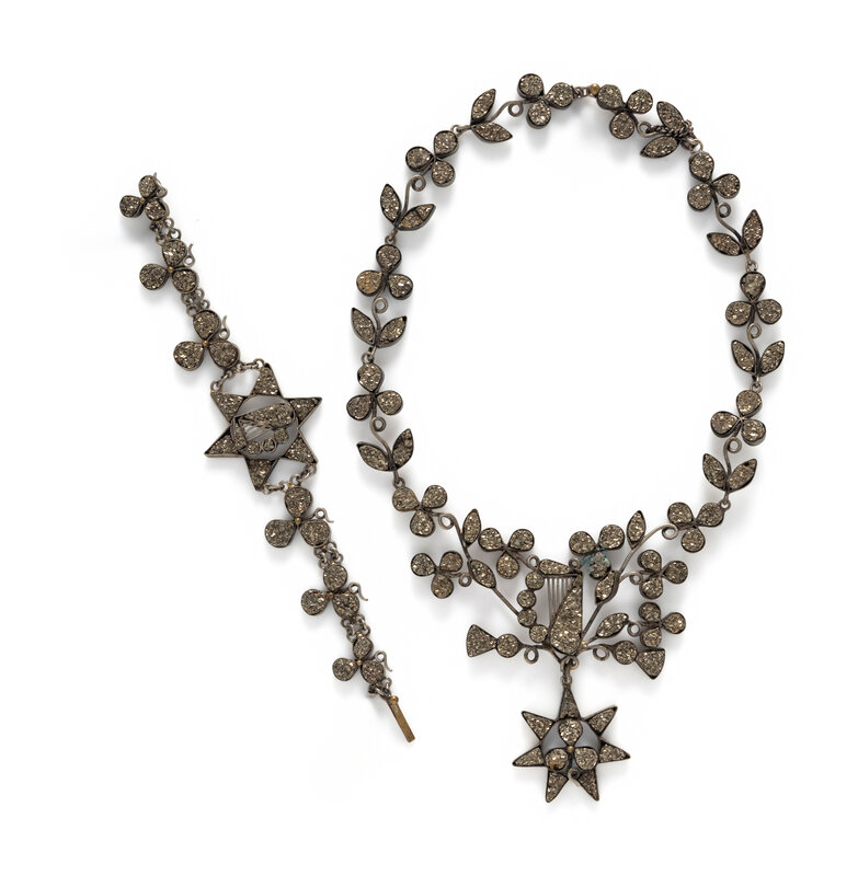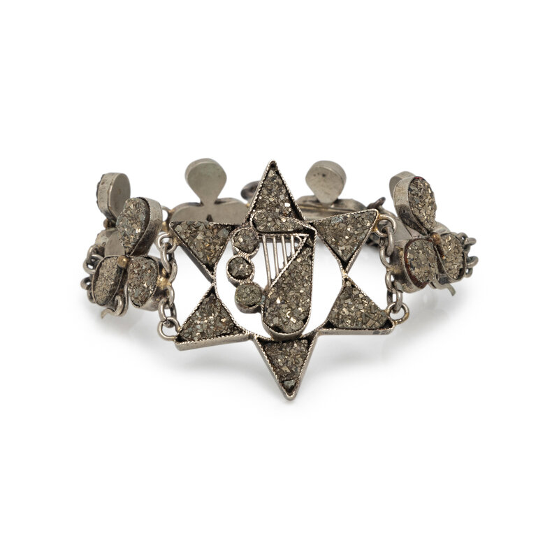 PYRITE SHAMROCK, HARP AND STAR NECKLACE AND BRACELET