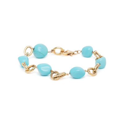 YELLOW GOLD AND TREATED TURQUOISE BRACELET