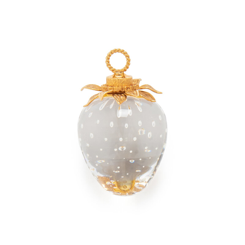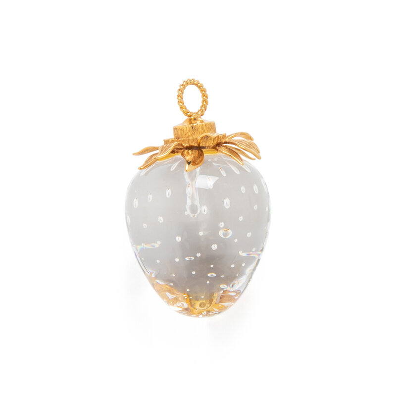 Glass strawberry. Yellow gold. 2 x 1 1/4 inches.