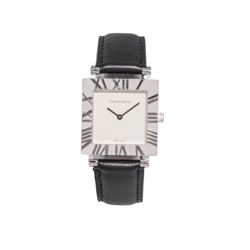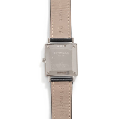 Bracelet/Strap: Black leather Tiffany & Co. strap