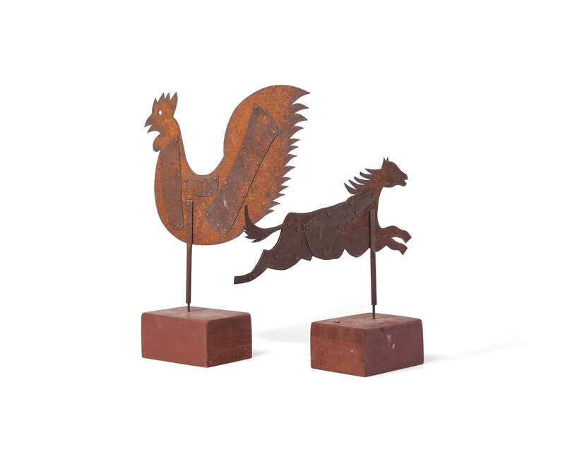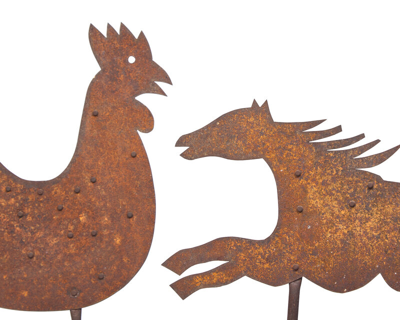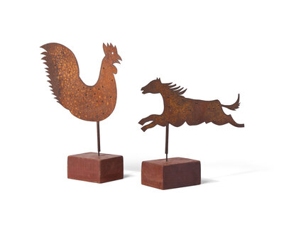 Two Sheet Iron Weathervanes: Horse and Rooster