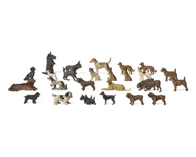 A Collection of Twenty-Five Cast and Painted Metal Dog Figurines
