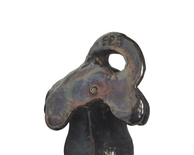 including a Scottie-form lighter, marked to underside, "Austria/ Patent Ang."; another made of weighted sterling silver, marked "925" to underside; and another being a scent bottle with red glass eyes.
