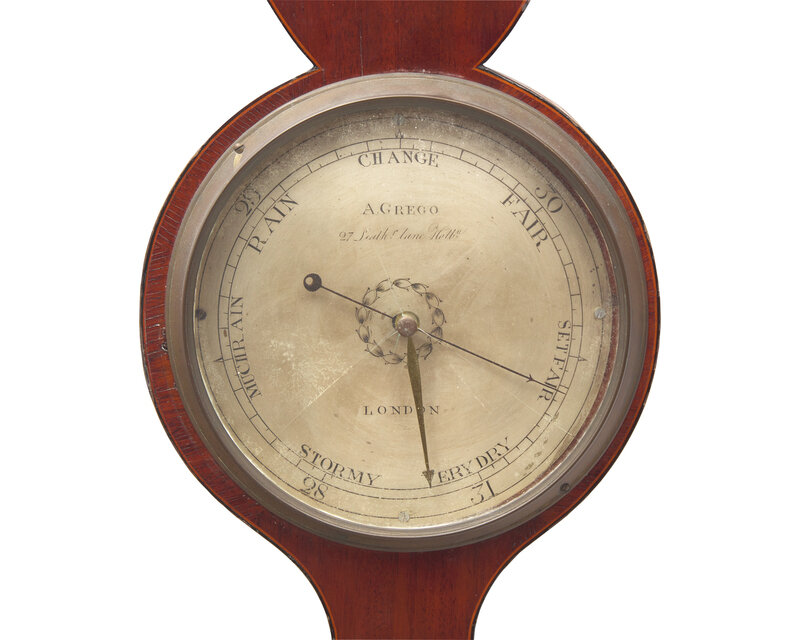 the silvered face engraved, "A. Grego/ 27 Leathr Lane Holbn/ London", the case inlaid with rosettes and shells.