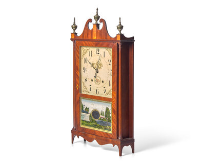 A Federal Inlaid Mahogany and Eglomise Shelf Clock