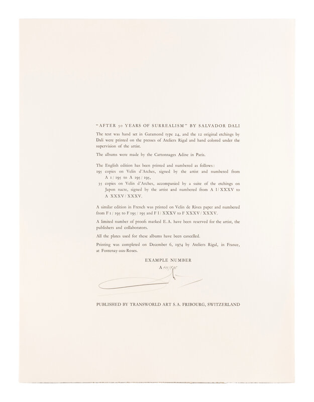 After 50 Years of Surrealism (complete portfolio of 12 with text and justification pages and portfolio case), 1974