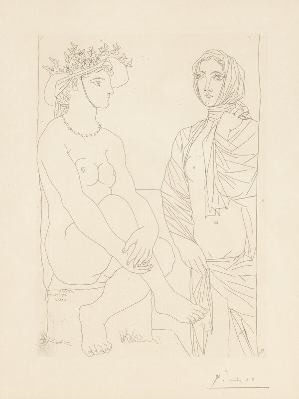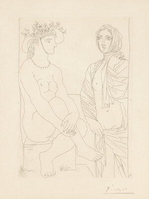 Femme assise au chapeau et femme debout drapée (from La Suite Vollard)
