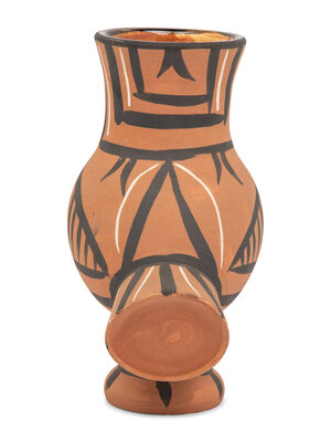 terracotta vase, partially engraved, with colored engobe and glaze
