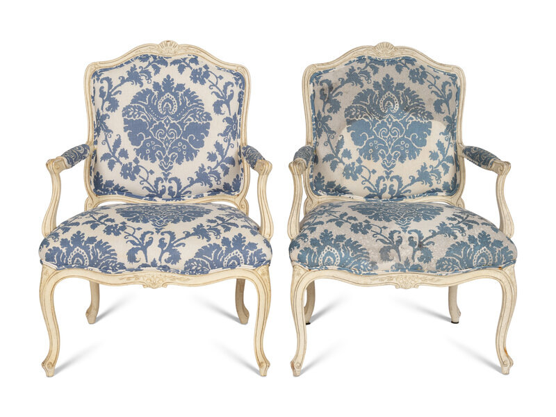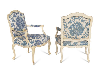 A Pair of Louis XV Style White-Painted Fauteuils