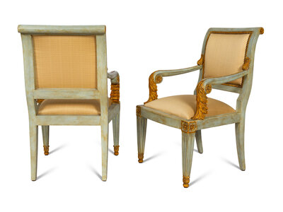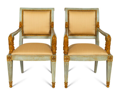 A Pair of Italian Neoclassical Style Blue-Painted and Parcel Gilt Armchairs