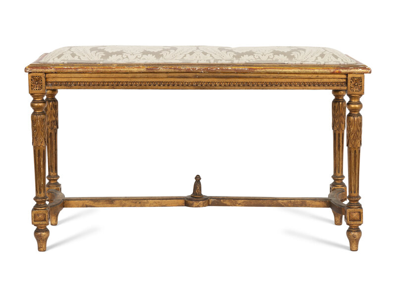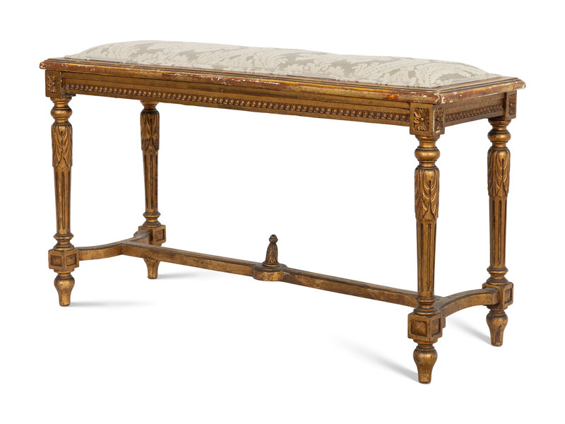 A Louis XVI Style Giltwood and Upholstered Bench