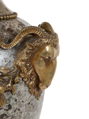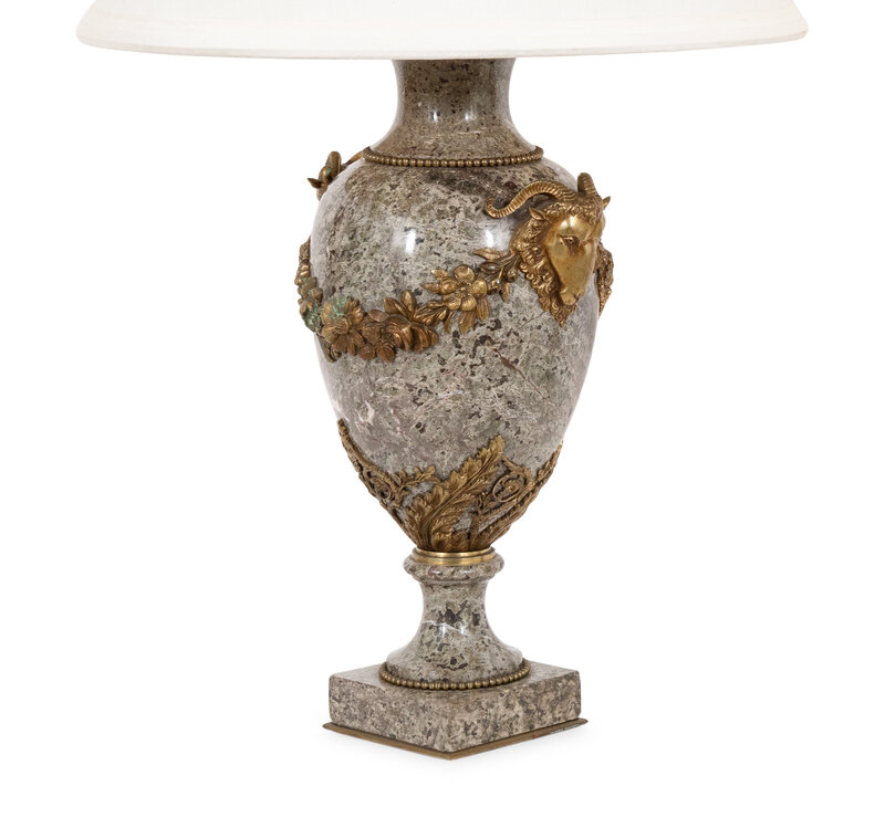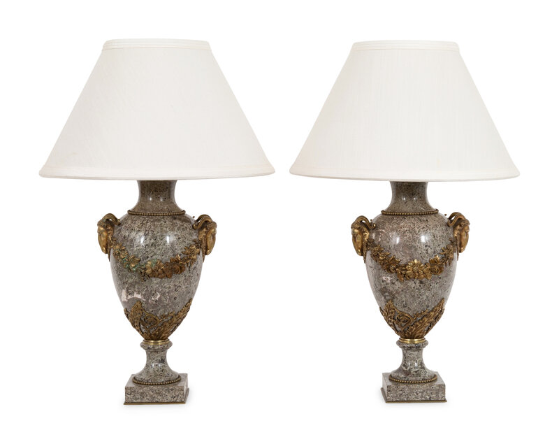 with ram's head and swag motifs, mounted as lamps.