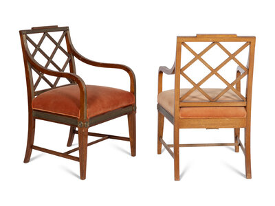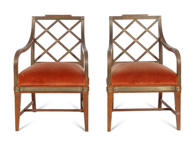 A Pair of Russian Neoclassical Brass Mounted Mahogany Armchairs