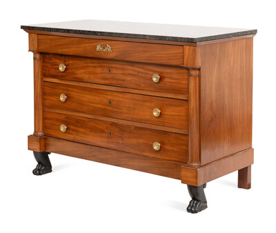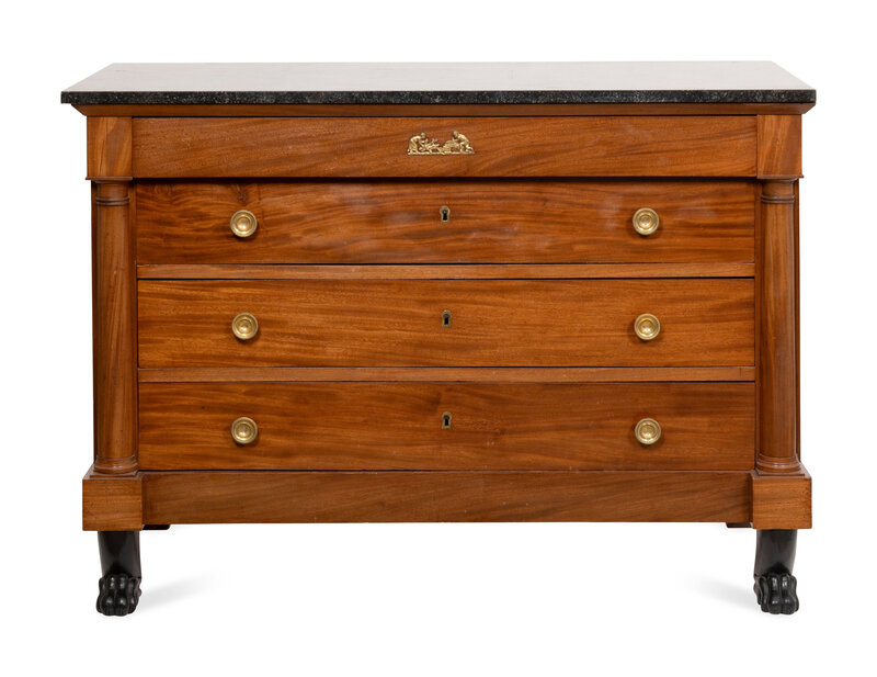 An Empire Mahogany Commode with Ebonized Paw Feet and Marble Top