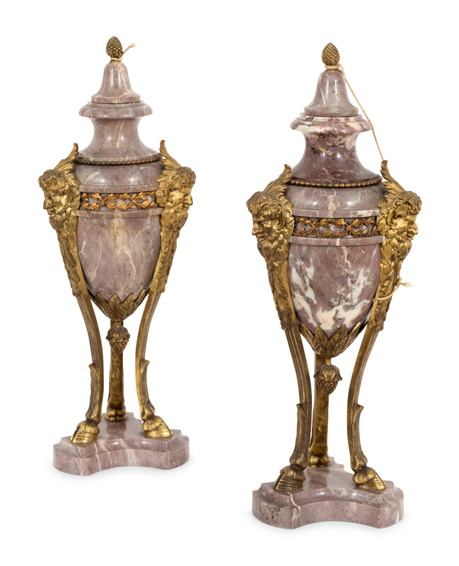 A Pair of French Marble and Gilt Bronze Mounted Cassolettes