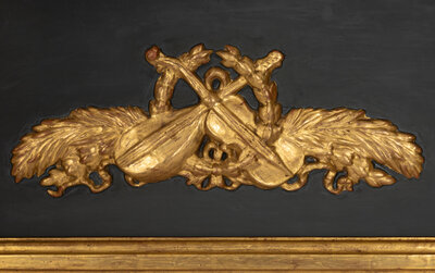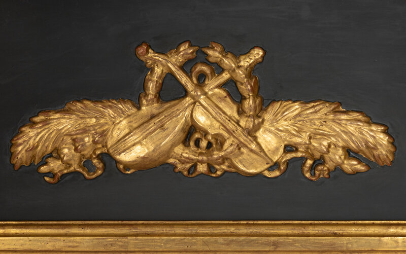 A Directoire Parcel Ebonized Giltwood Trumeau Mirror