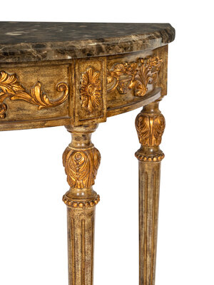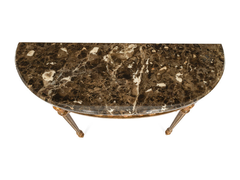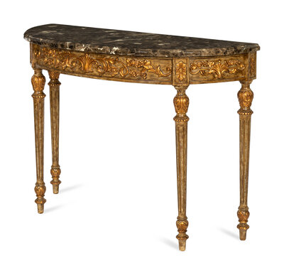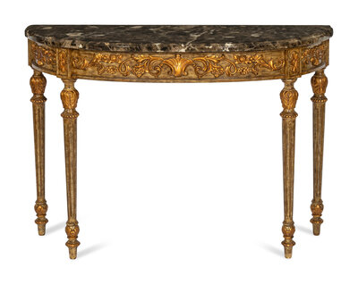 An Italian Painted and Parcel Gilt Demilune Console Table with Marble Top