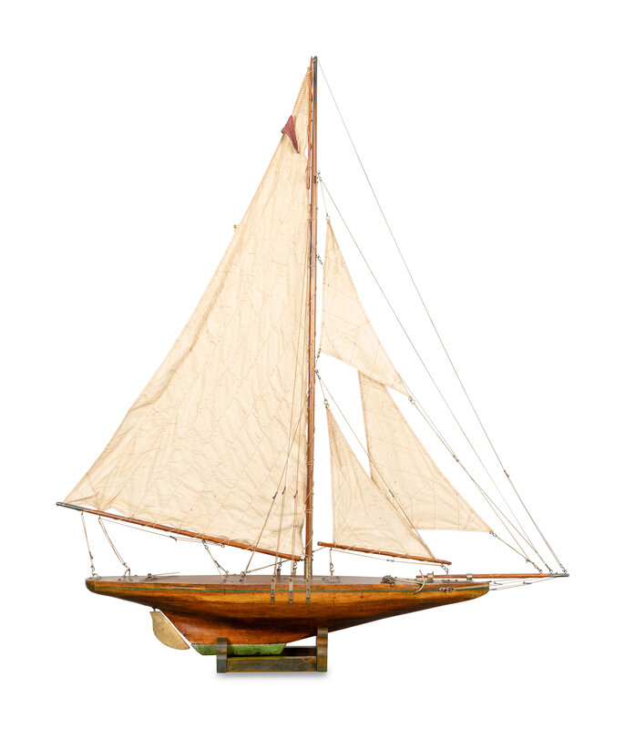 A Four-Sail Gaff-Rigged Pond Yacht on Stand