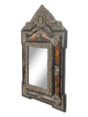 A Dutch Baroque Style Faux-Tortoise Shell Brass-Mounted Repoussé Cushion Mirror
