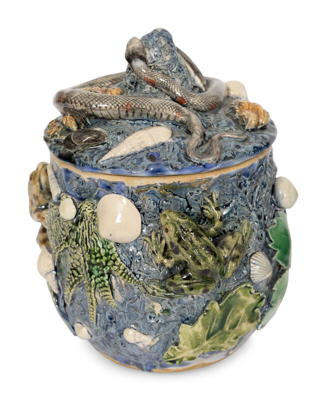 A jar and cover, height 7 1/2 inches.