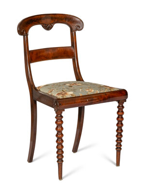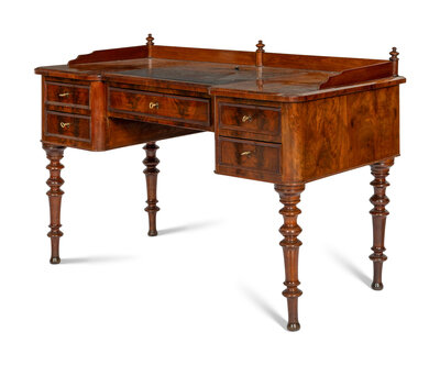 A Continental Mahogany Five-Drawer Writing Desk and Associated Regency Chair