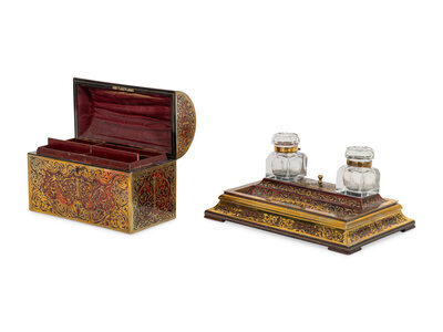A French Boulle Marquetry and Tortoise Shell Standish and Domed Letter Box