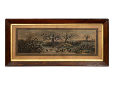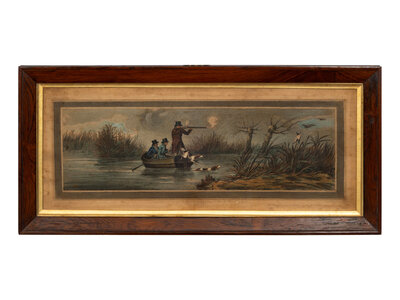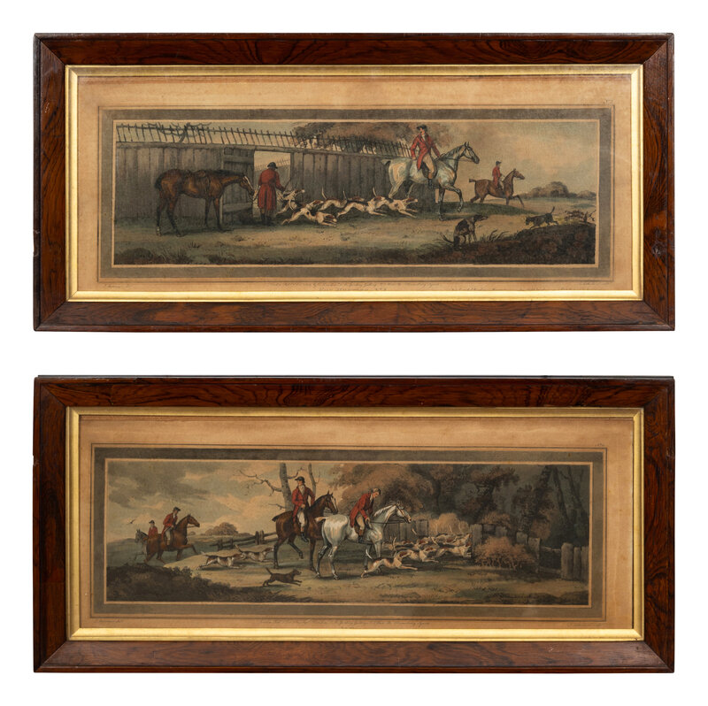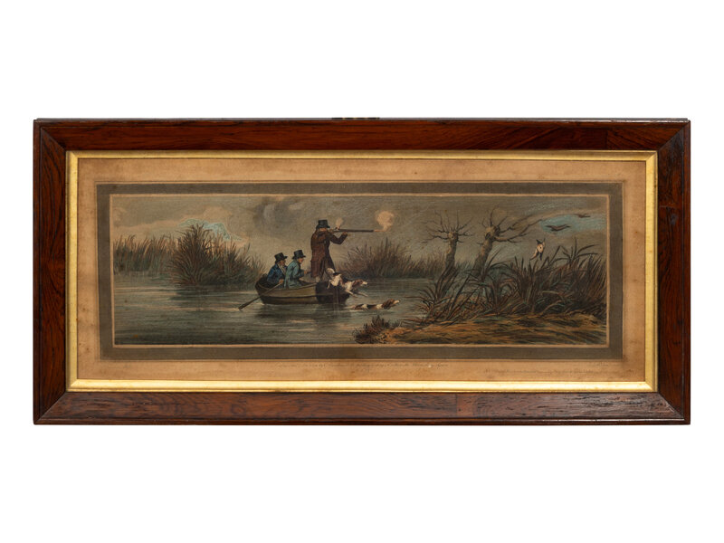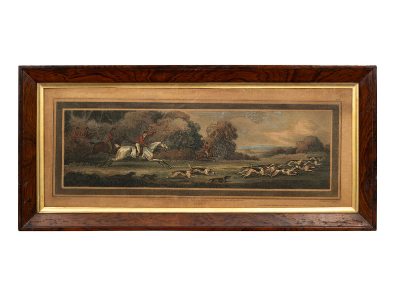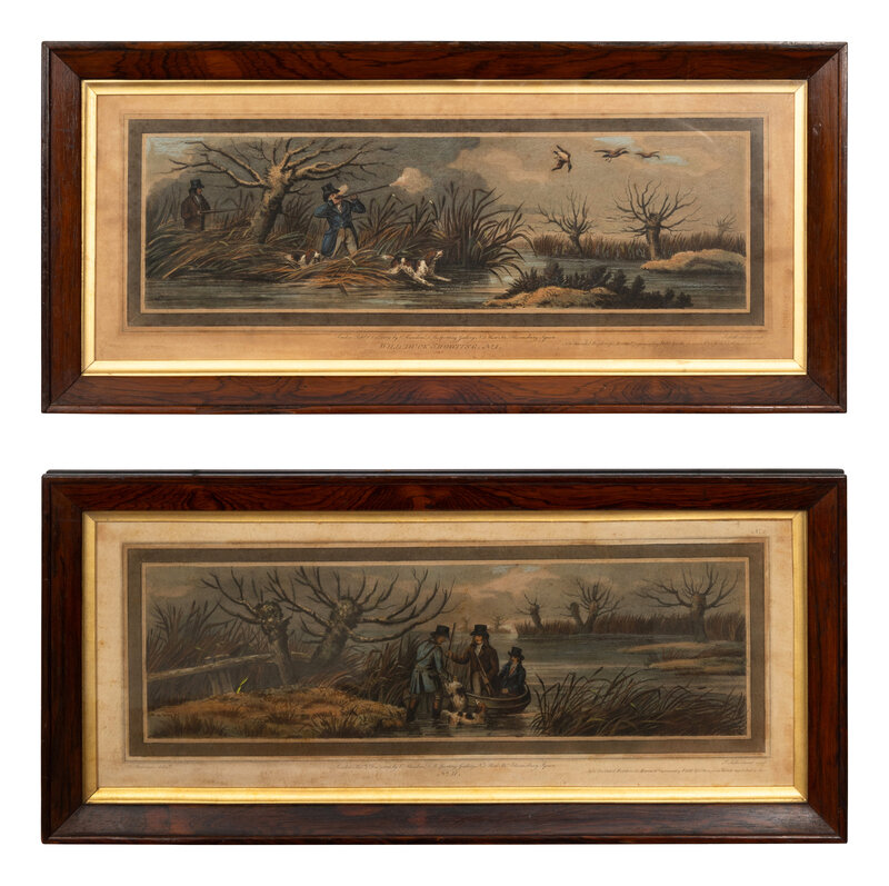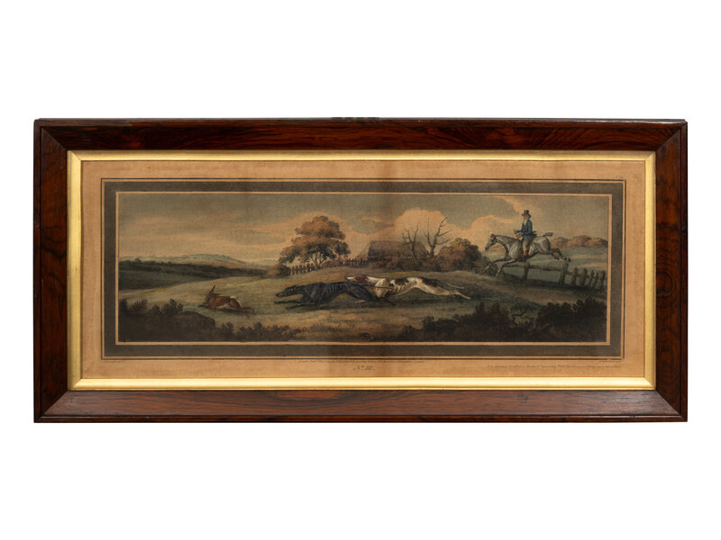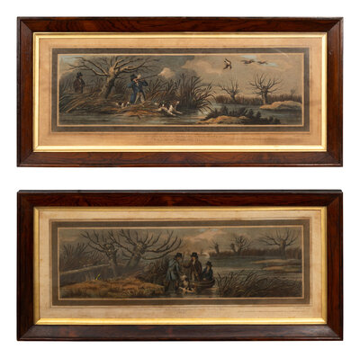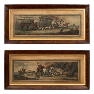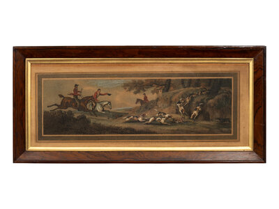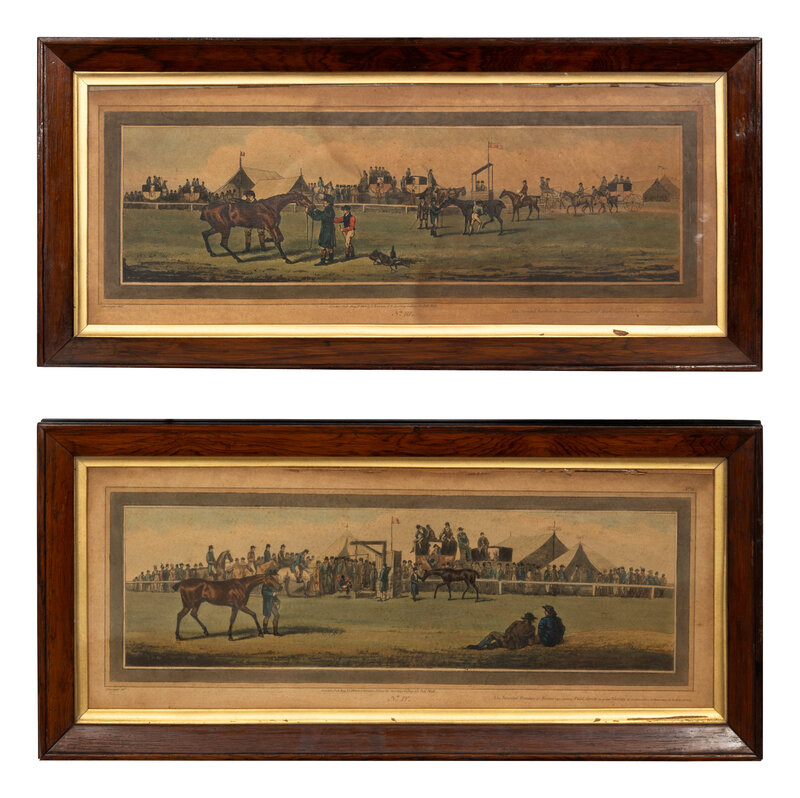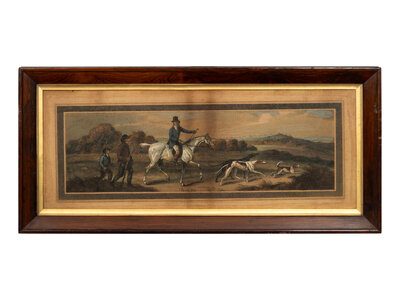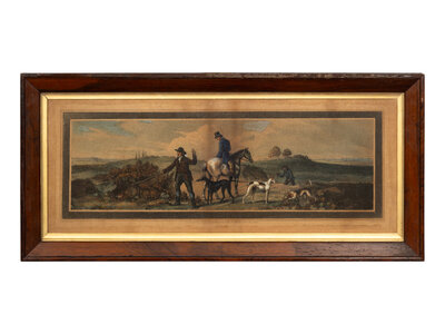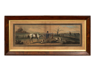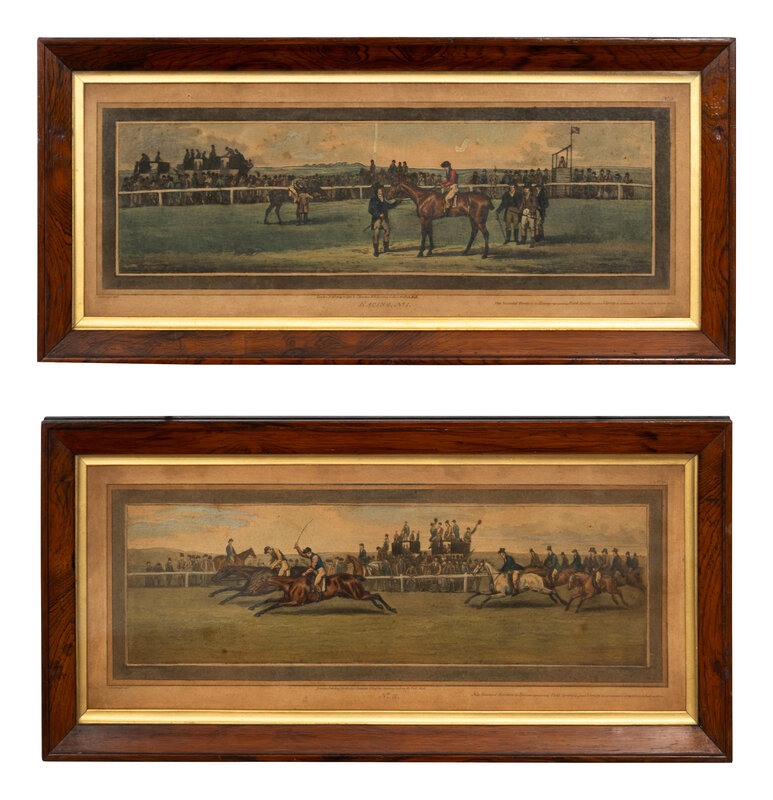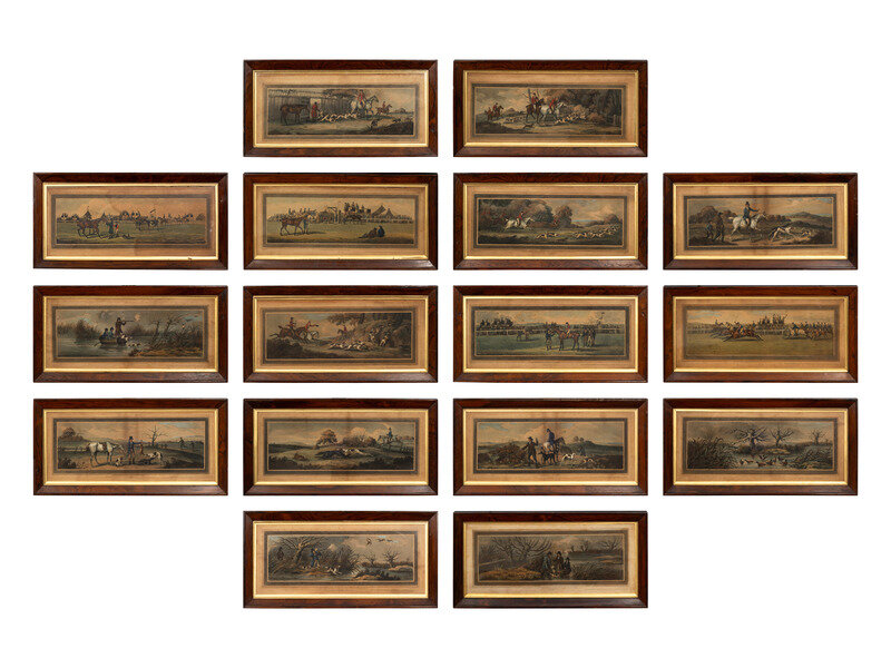 comprising: (12) from New Invented Borders for Rooms...Representing Field Sports in Great Variety, Sutherland and James Beranger, including scenes of bird shoots, fox hunts, horse racing; and (4) horse racing scenes engraved by Barenger, all uniformly matted and framed,