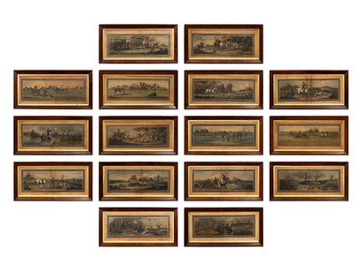 A Set of Sixteen English Hand-Colored Sporting Engravings