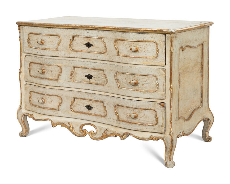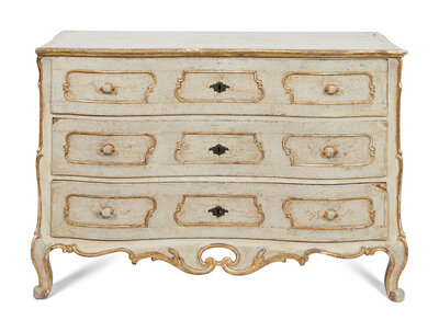 An Italian Rococo Cream-Painted and Parcel Gilt Commode