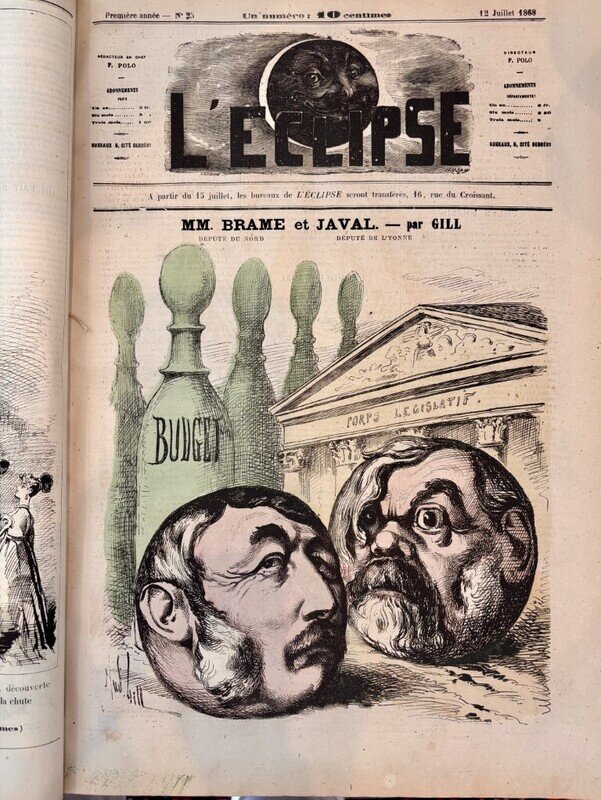 L'Eclipse Satirical Weekly Journal Bound in 3 Folios, Illustrations by Andre Gill