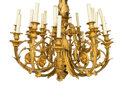 A Fine Louis XVI Style Ormolu Eighteen-Light Chandelier