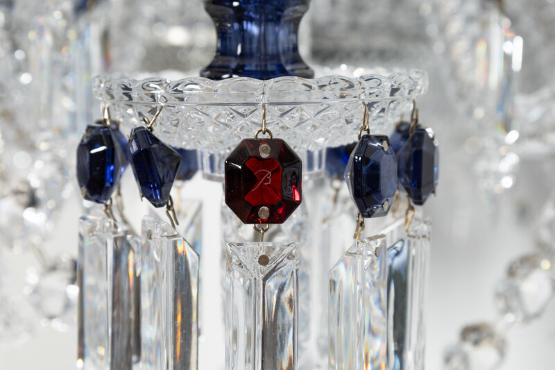 with cobalt blue glass accents.