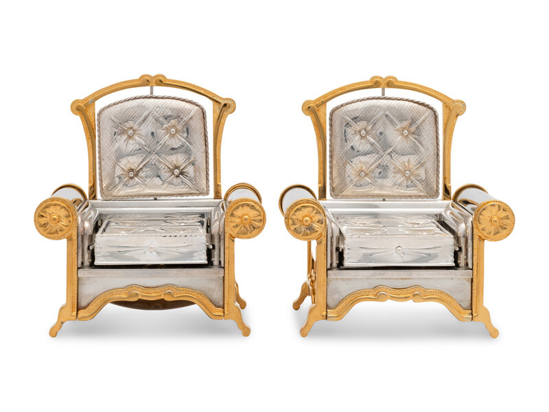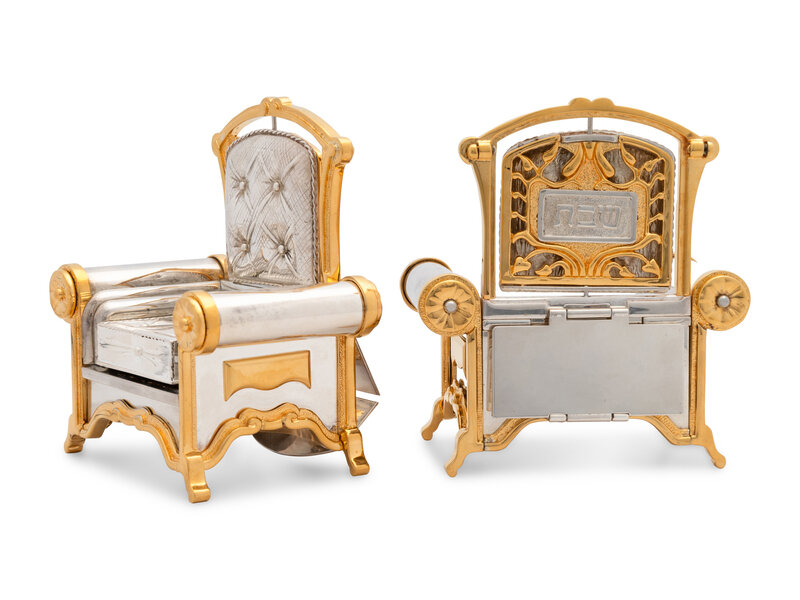 A Pair of Yossi Swed Partial Gilt Silver Armchair Shabbat Candlesticks