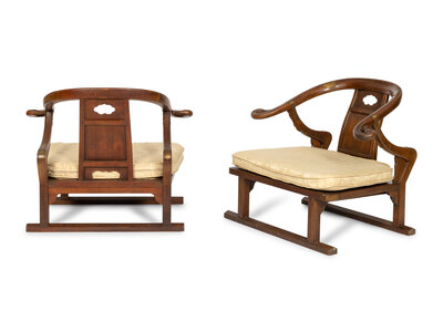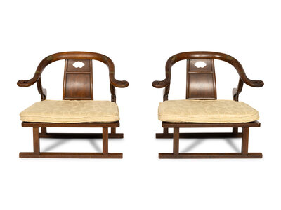 A Pair of Baker Furniture Walnut Horseshoe Back Chairs